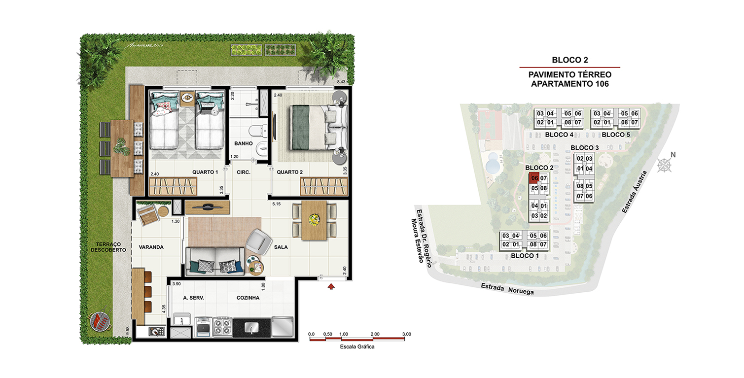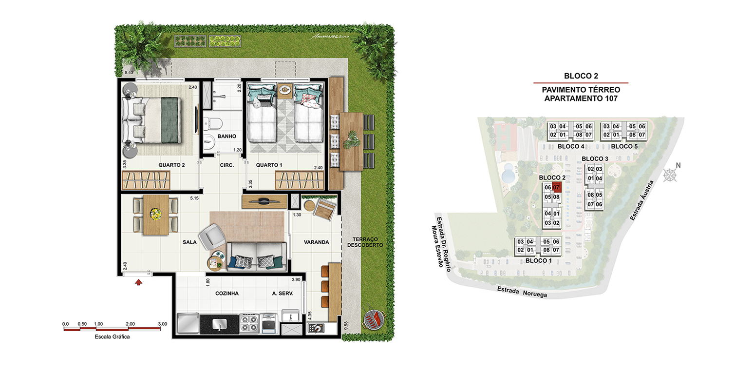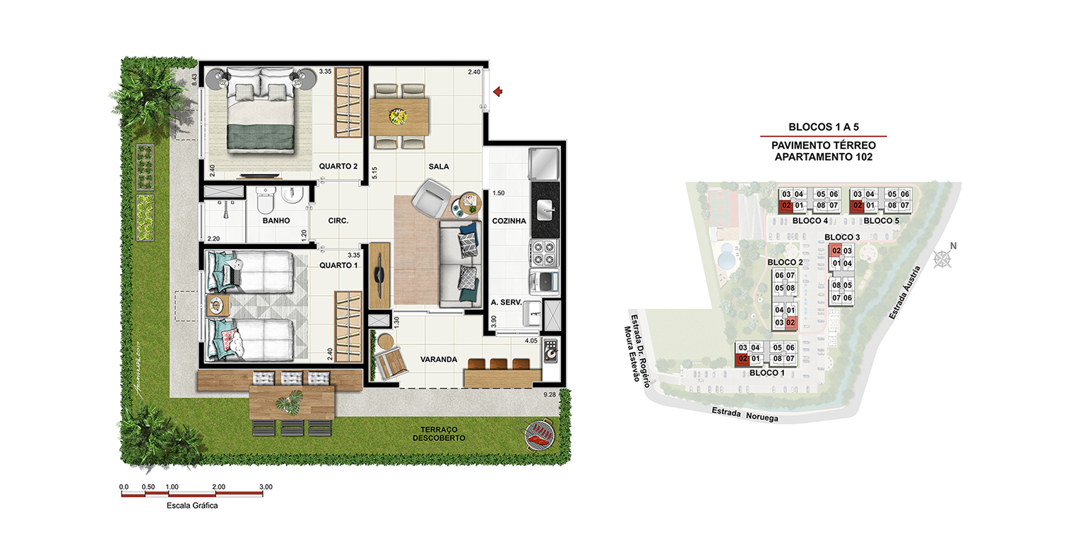 A nossa preocupação é oferecer um espaço integrado, em que cada pessoa se sinta parte do seu novo lar. Por isso, o lazer traz o contato com a natureza e espaços para momentos únicos.